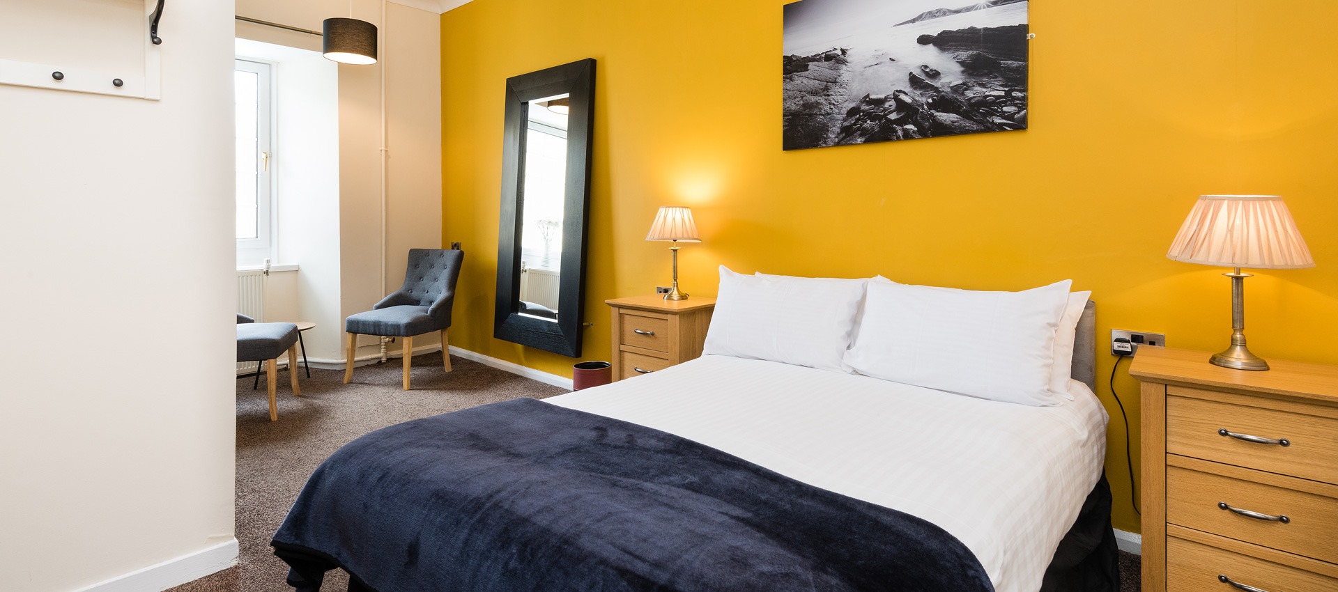 We welcome well-behaved dogs in selected rooms (£20 supplement), with plenty of scenic walks nearby to enjoy together.