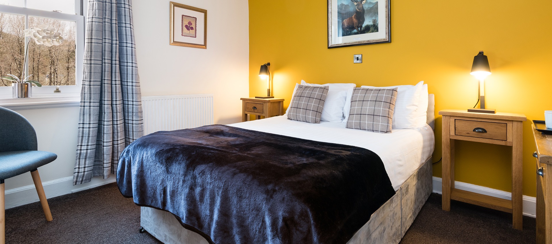 The Killin Hotel has 38 en-suite guest bedrooms, offering a selection of double, twin, single, family, and romantic four-poster rooms. The hotel also features five Annex Rooms located directly next to the main building. Please contact our reservations desk with any questions.