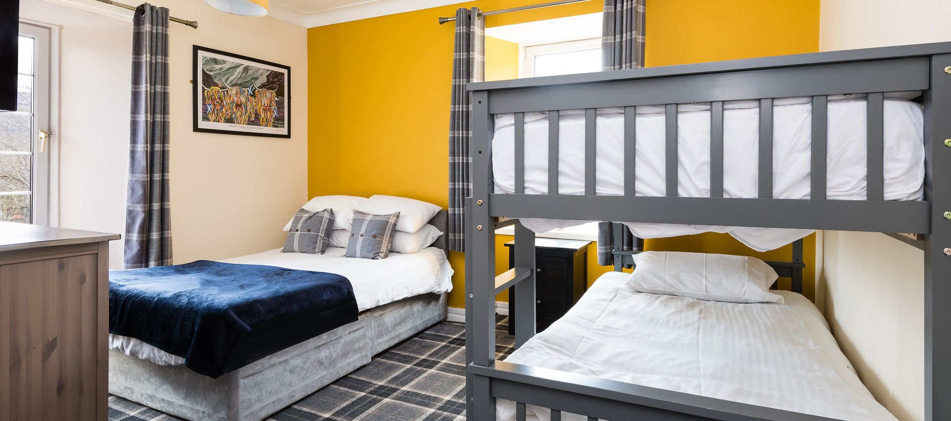 Our Family Rooms are spacious and comfortable, making them ideal for families or small groups visiting the Highlands. Each room offers flexible bedding arrangements and plenty of space to relax after a day exploring Killin, Loch Tay, and the surrounding mountains.